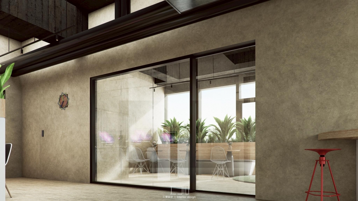 牆面: 大面積使用淺米灰色調的仿舊水泥面肌理牆體,確保空間在工業風的基礎上依然保持明亮通透。